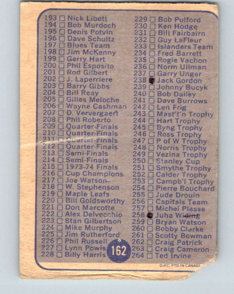 1974-75 O-Pee-Chee #162 Checklist V4598