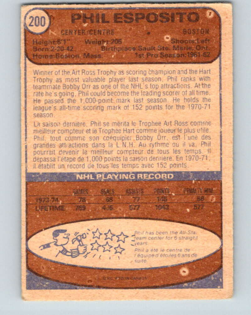 1974-75 O-Pee-Chee #200 Phil Esposito Boston Bruins V4695