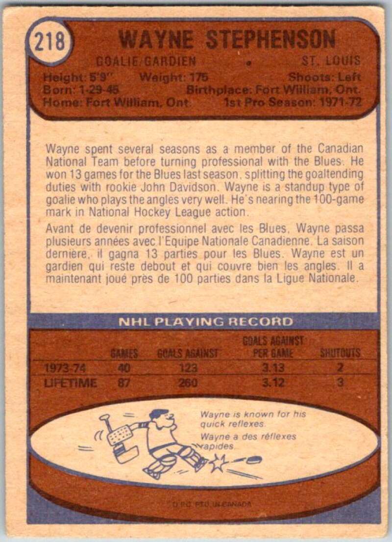 1974-75 O-Pee-Chee #218 Wayne Stephenson St. Louis Blues V46331