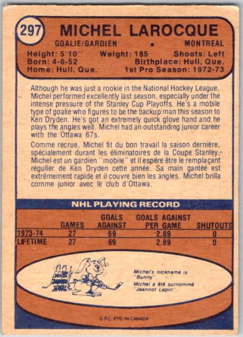 1974-75 O-Pee-Chee #297 Michel Larocque RC Rookie Montreal Canadiens V46408