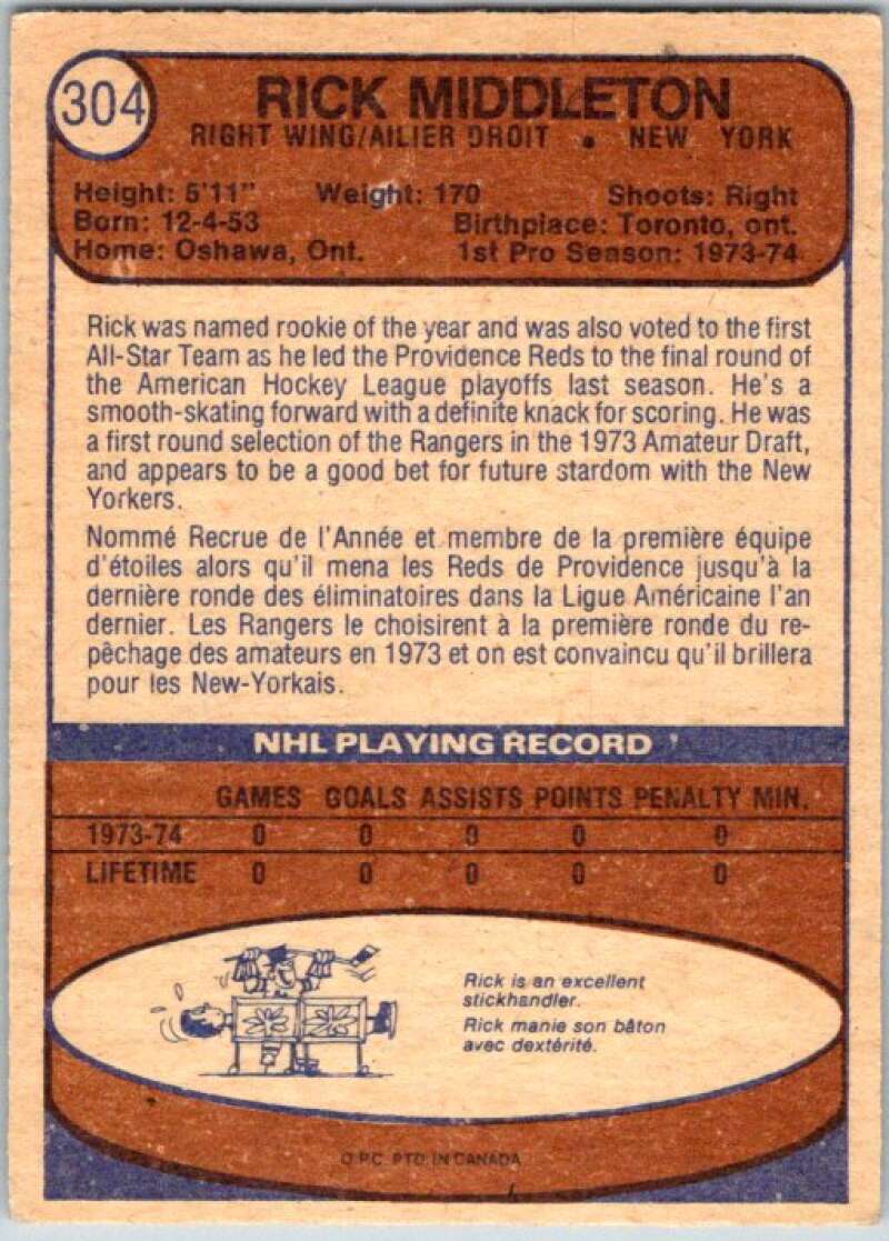 1974-75 O-Pee-Chee #304 Rick Middleton RC Rookie New York Rangers V46415
