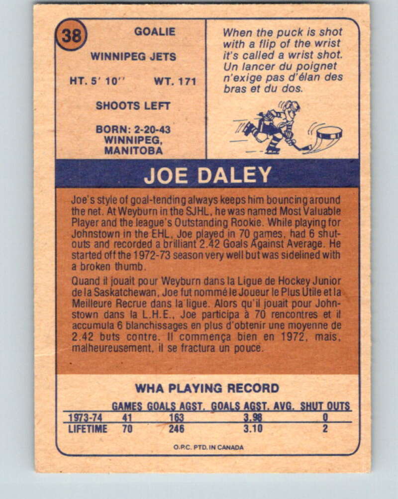 1974-75 WHA O-Pee-Chee #38 Joe Daley Winnipeg Jets V7098