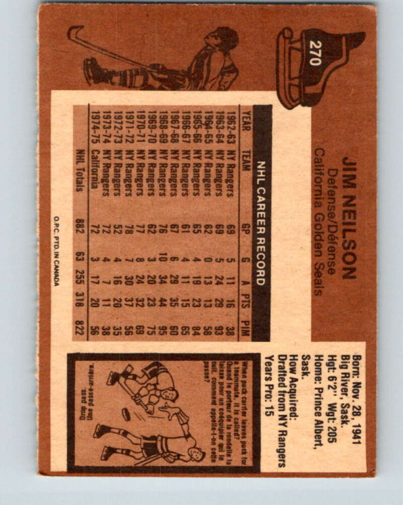 1975-76 O-Pee-Chee #270 Jim Neilson California Golden Seals V6380
