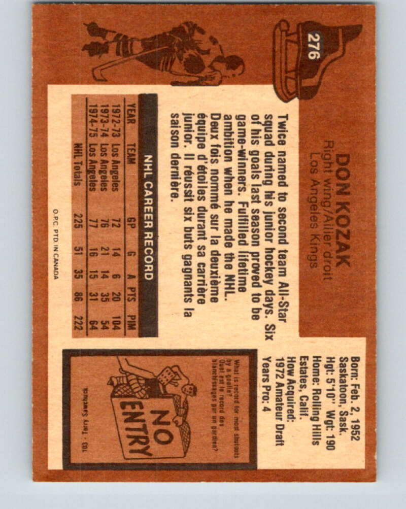 1975-76 O-Pee-Chee #276 Don Kozak Los Angeles Kings V6406