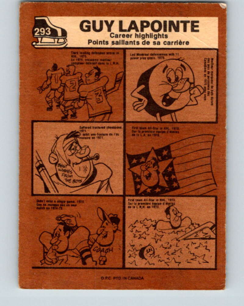 1975-76 O-Pee-Chee #293 Guy Lapointe AS Montreal Canadiens V6494