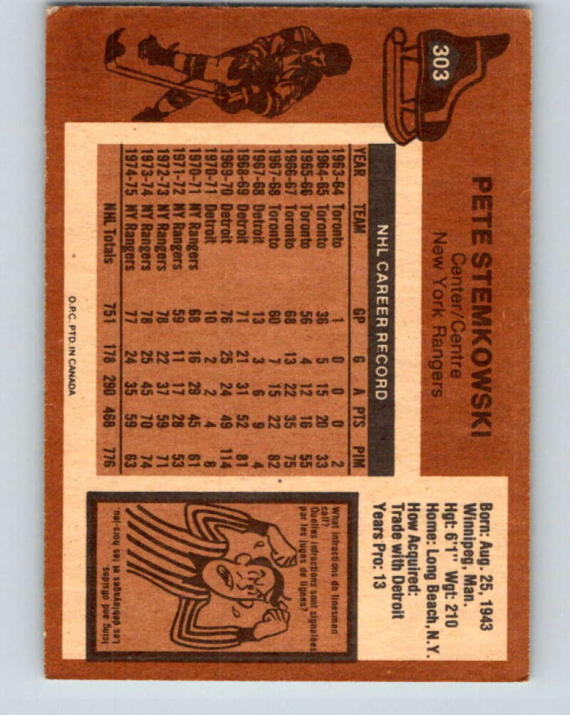 1975-76 O-Pee-Chee #303 Pete Stemkowski New York Rangers V6543