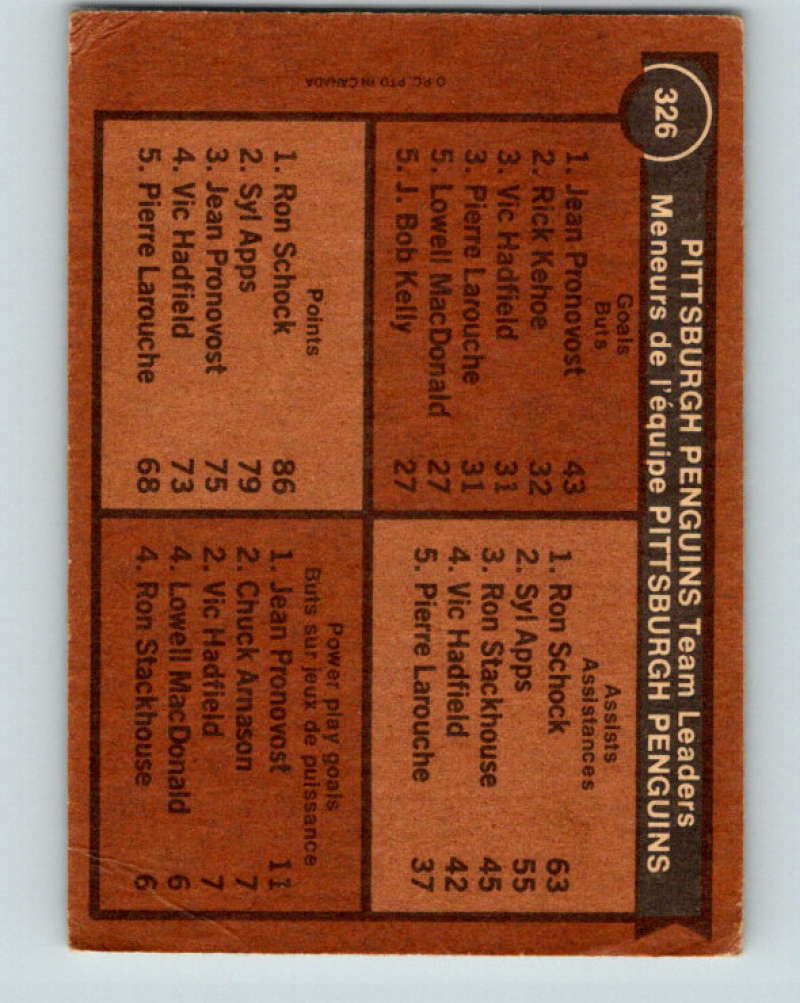 1975-76 O-Pee-Chee #326 Jean Pronovost/Ron Schock TL Pittsburgh Penguins 9554
