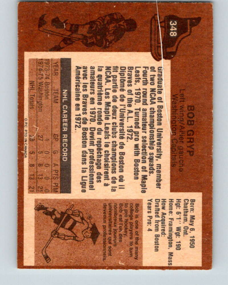 1975-76 O-Pee-Chee #348 Bob Gryp RC Rookie Washington Capitals V6749
