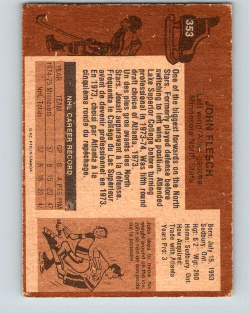 1975-76 O-Pee-Chee #353 John Flesch RC Rookie Minnesota North Stars 9581