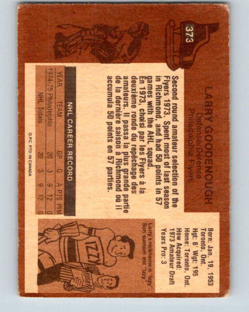 1975-76 O-Pee-Chee #373 Larry Goodenough RC Rookie Philadelphia Flyers V6846