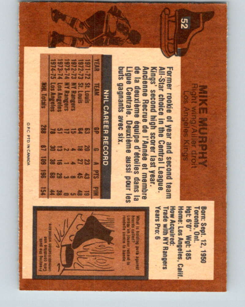 1975-76 O-Pee-Chee #52 Mike Murphy Los Angeles Kings V5414