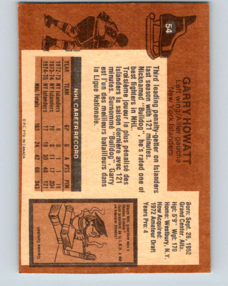 1975-76 O-Pee-Chee #54 Garry Howatt New York Islanders V5418