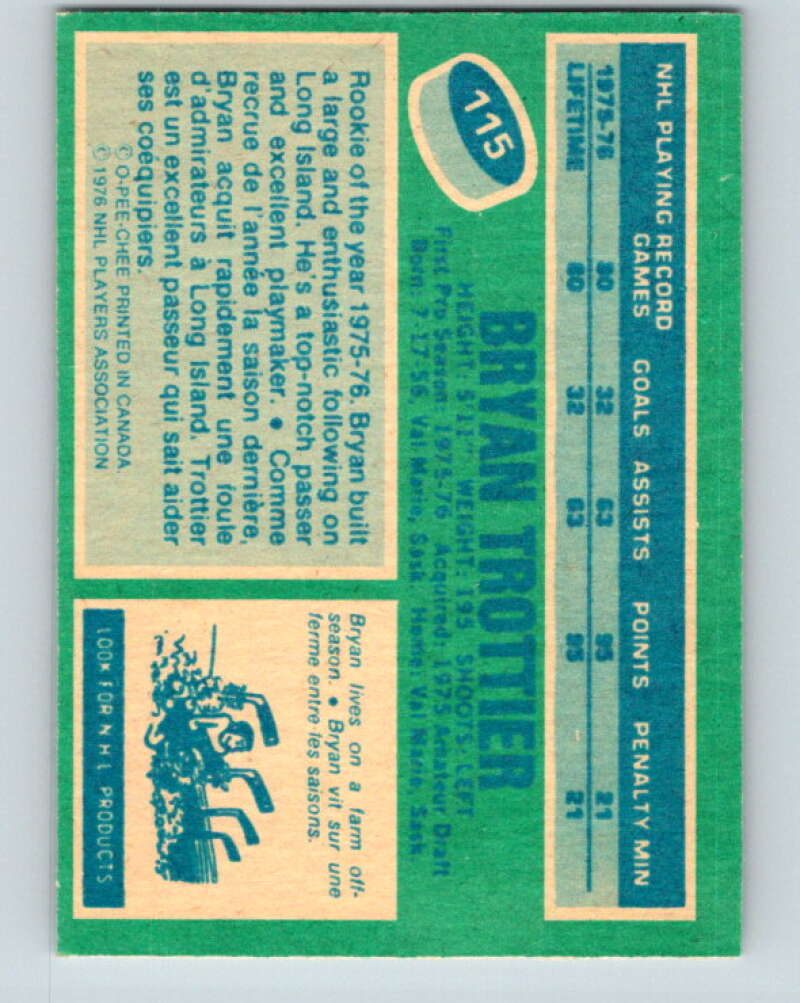 1976-77 O-Pee-Chee #115 Bryan Trottier RC Rookie Islanders V12594