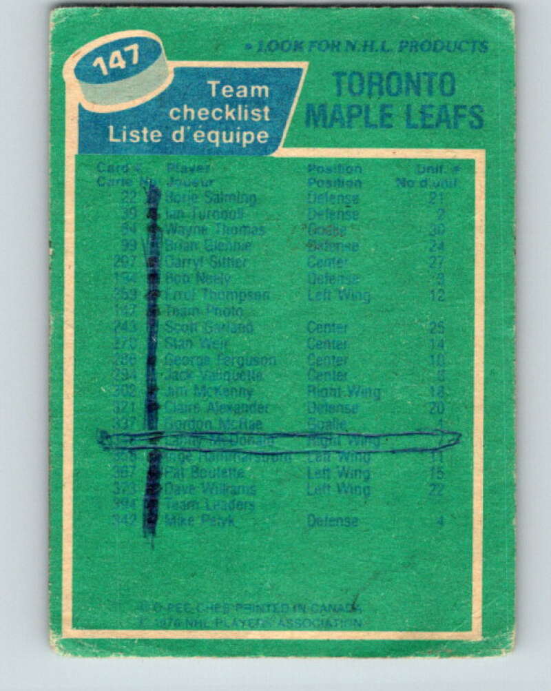 1976-77 O-Pee-Chee #147 Toronto Maple Leafs CL V12102