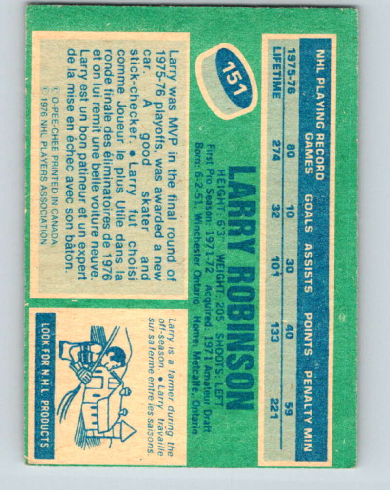 1976-77 O-Pee-Chee #151 Larry Robinson Montreal Canadiens V12118