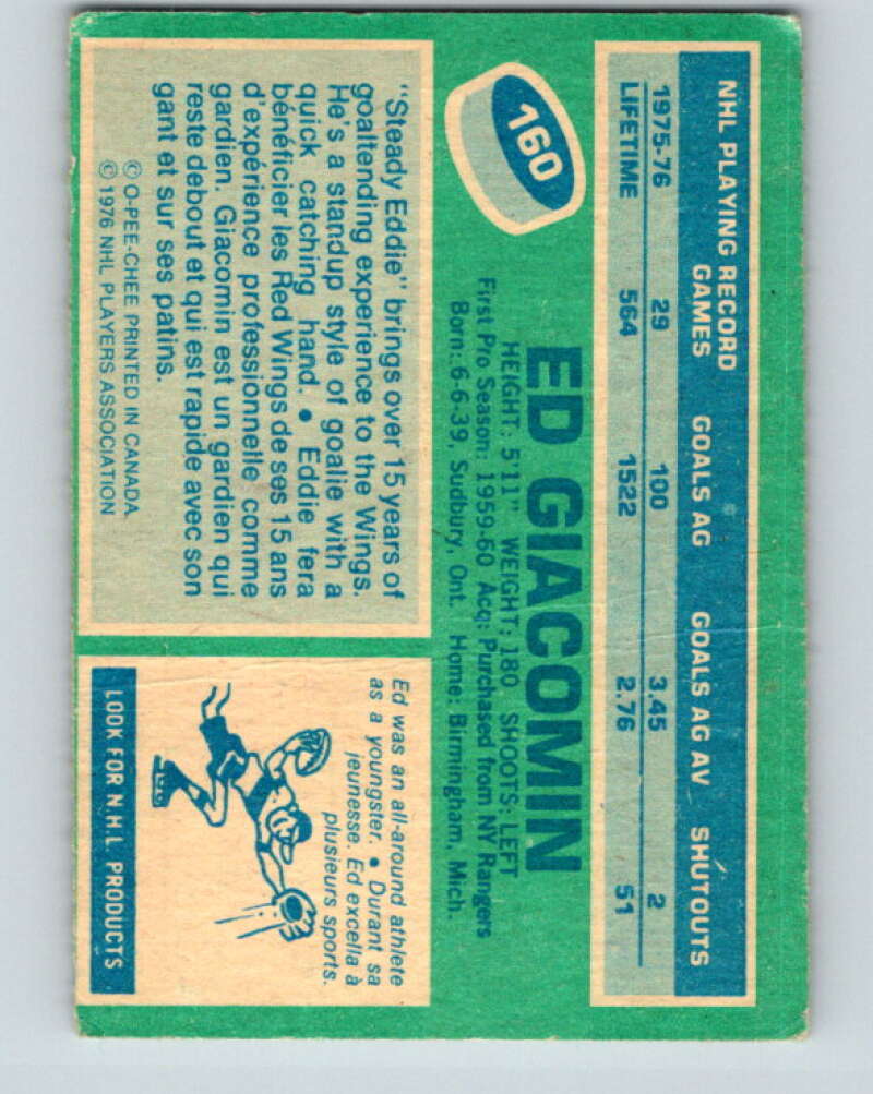 1976-77 O-Pee-Chee #160 Ed Giacomin Detroit Red Wings V12150