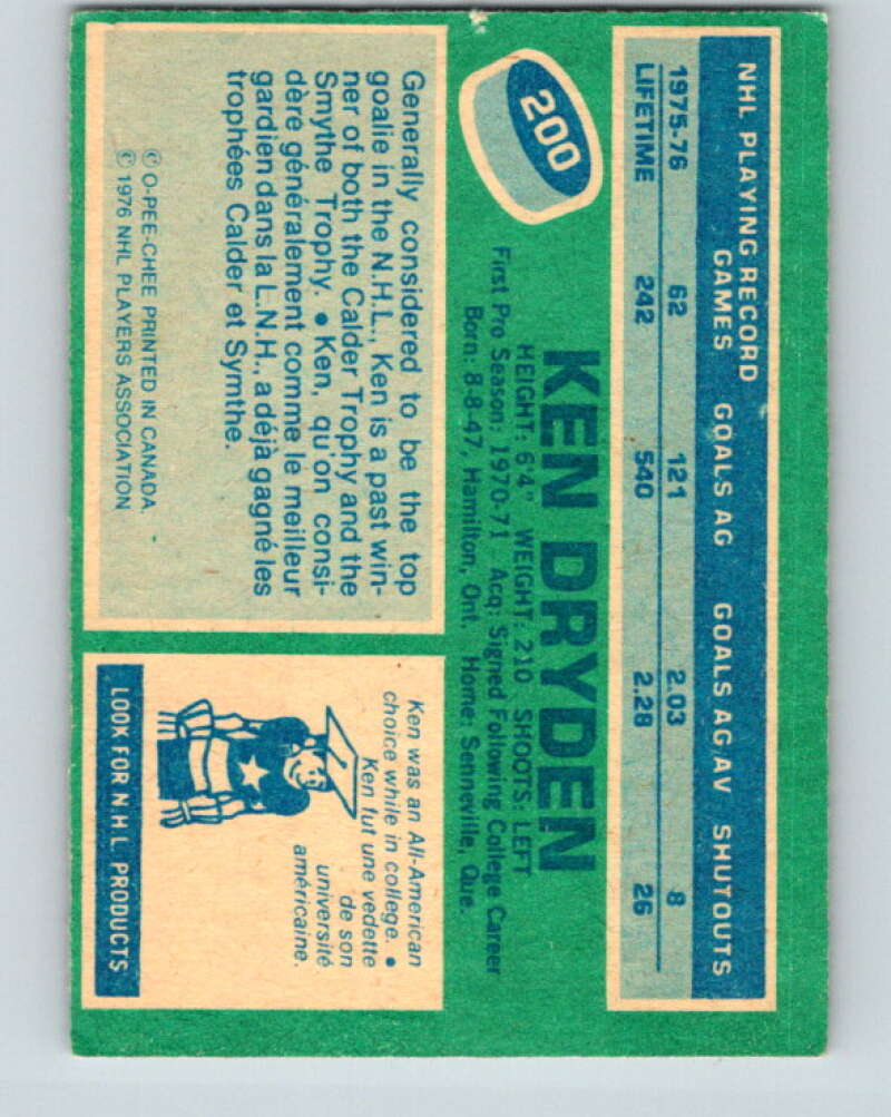 1976-77 O-Pee-Chee #200 Ken Dryden Montreal Canadiens V12276