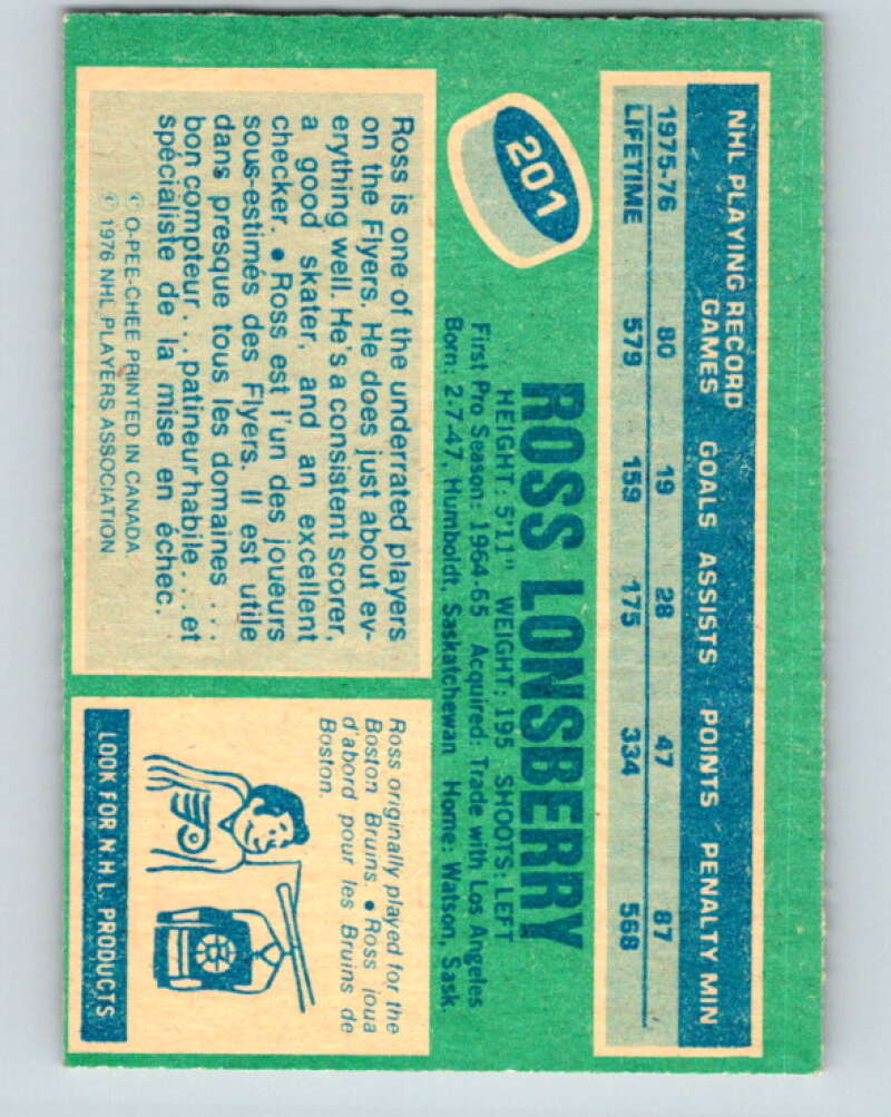 1976-77 O-Pee-Chee #201 Ross Lonsberry Philadelphia Flyers V12281
