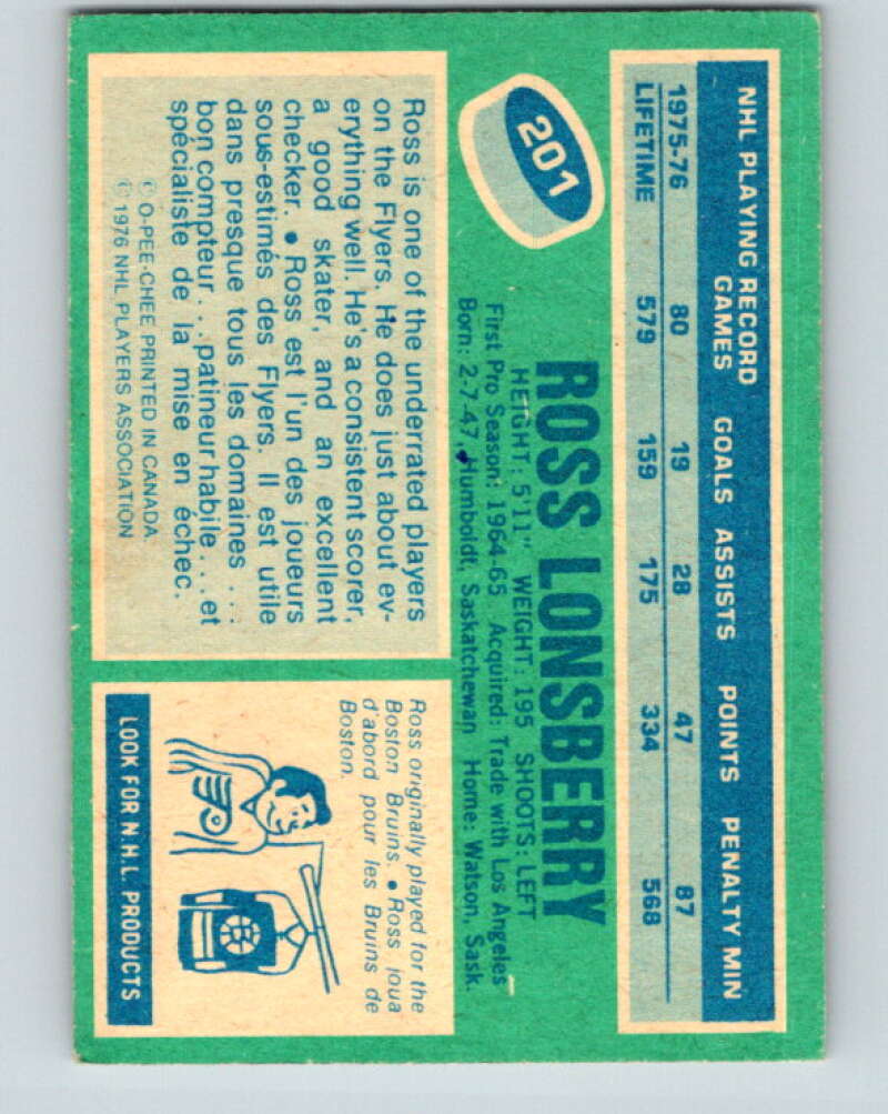 1976-77 O-Pee-Chee #201 Ross Lonsberry Philadelphia Flyers V12285