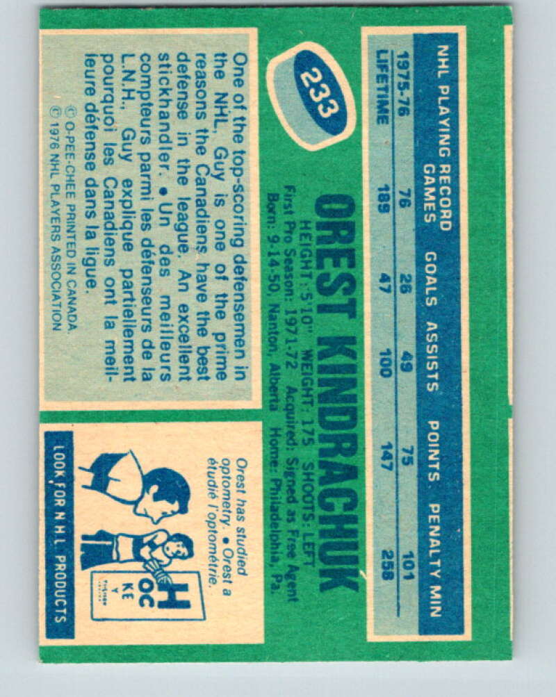 1976-77 O-Pee-Chee #233 Orest Kindrachuk Philadelphia Flyers V12368