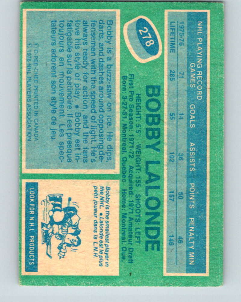 1976-77 O-Pee-Chee #278 Bobby Lalonde Vancouver Canucks V12689