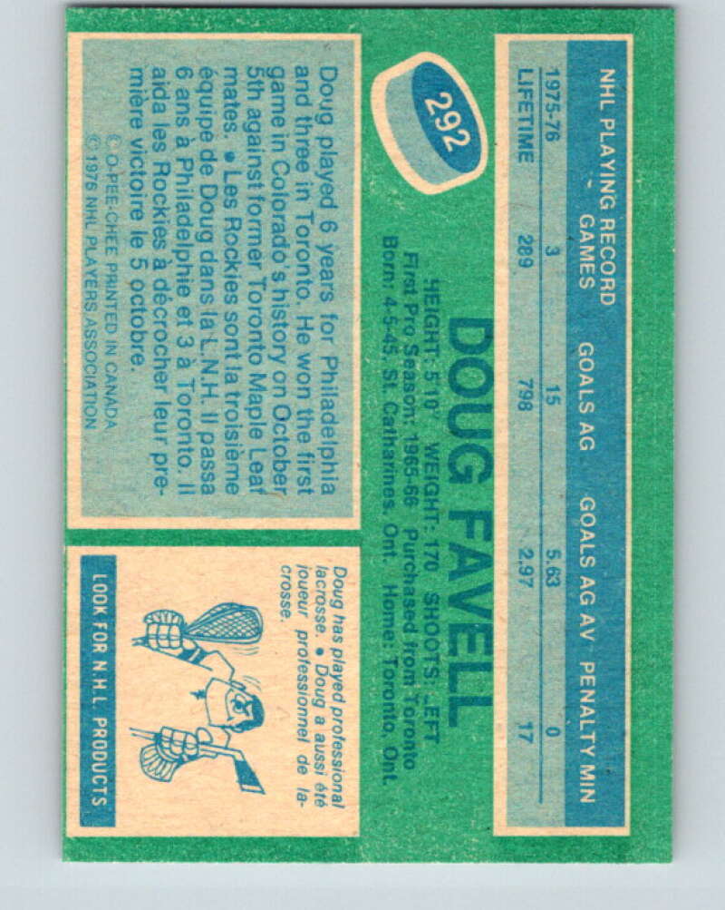 1976-77 O-Pee-Chee #292 Doug Favell Colorado Rockies V12729