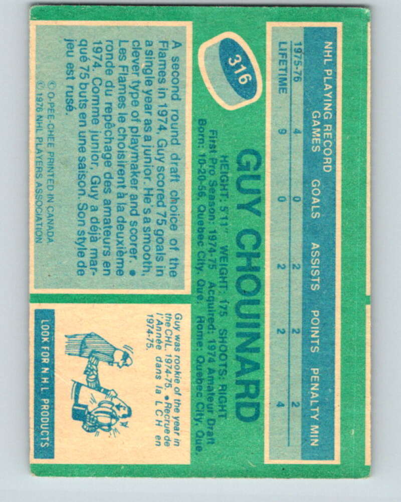1976-77 O-Pee-Chee #316 Guy Chouinard RC Rookie Atlanta Flames V12781