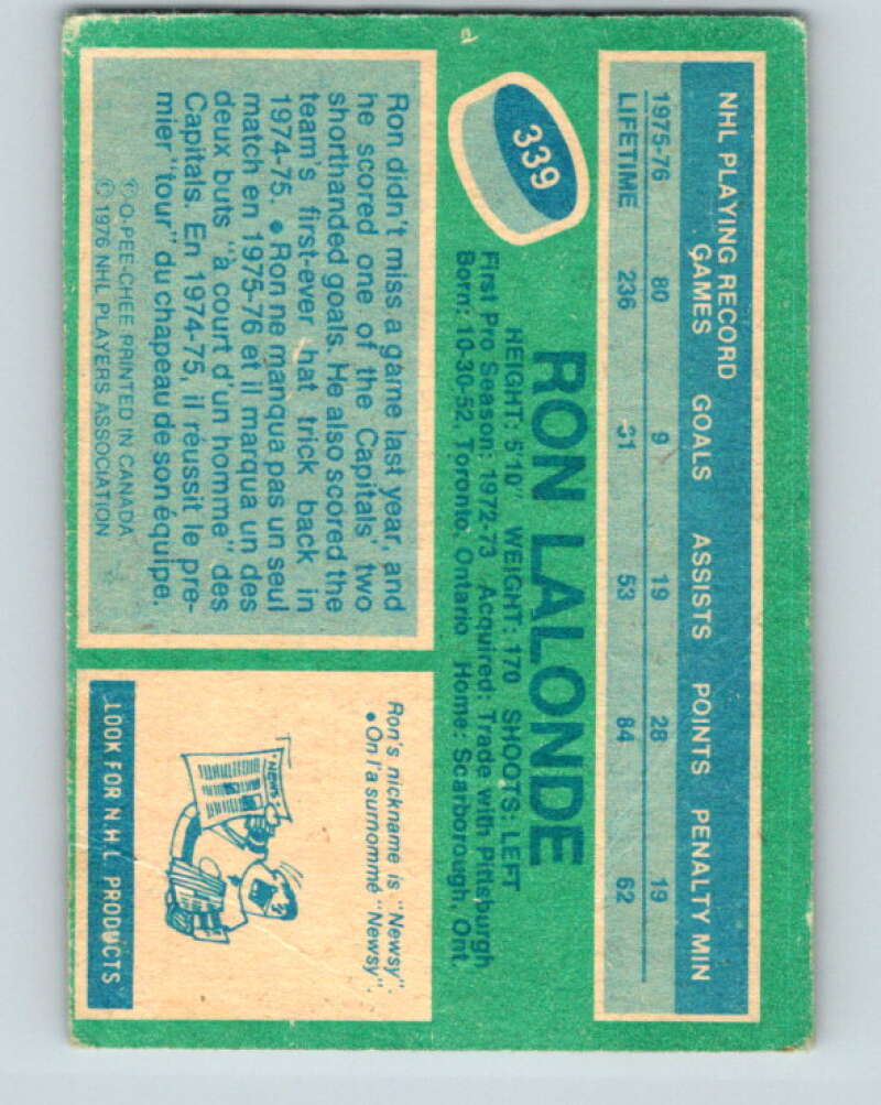 1976-77 O-Pee-Chee #339 Ron Lalonde Washington Capitals V12837