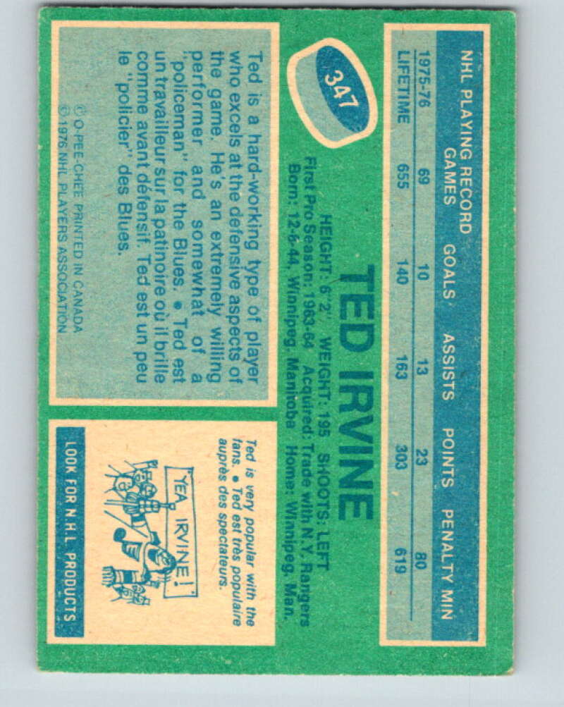 1976-77 O-Pee-Chee #347 Ted Irvine St. Louis Blues V12843