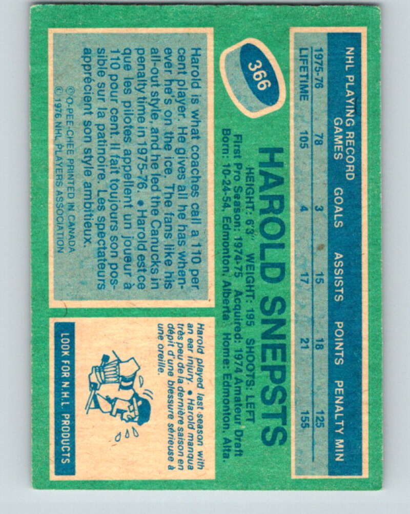 1976-77 O-Pee-Chee #366 Harold Snepsts Vancouver Canucks V12887