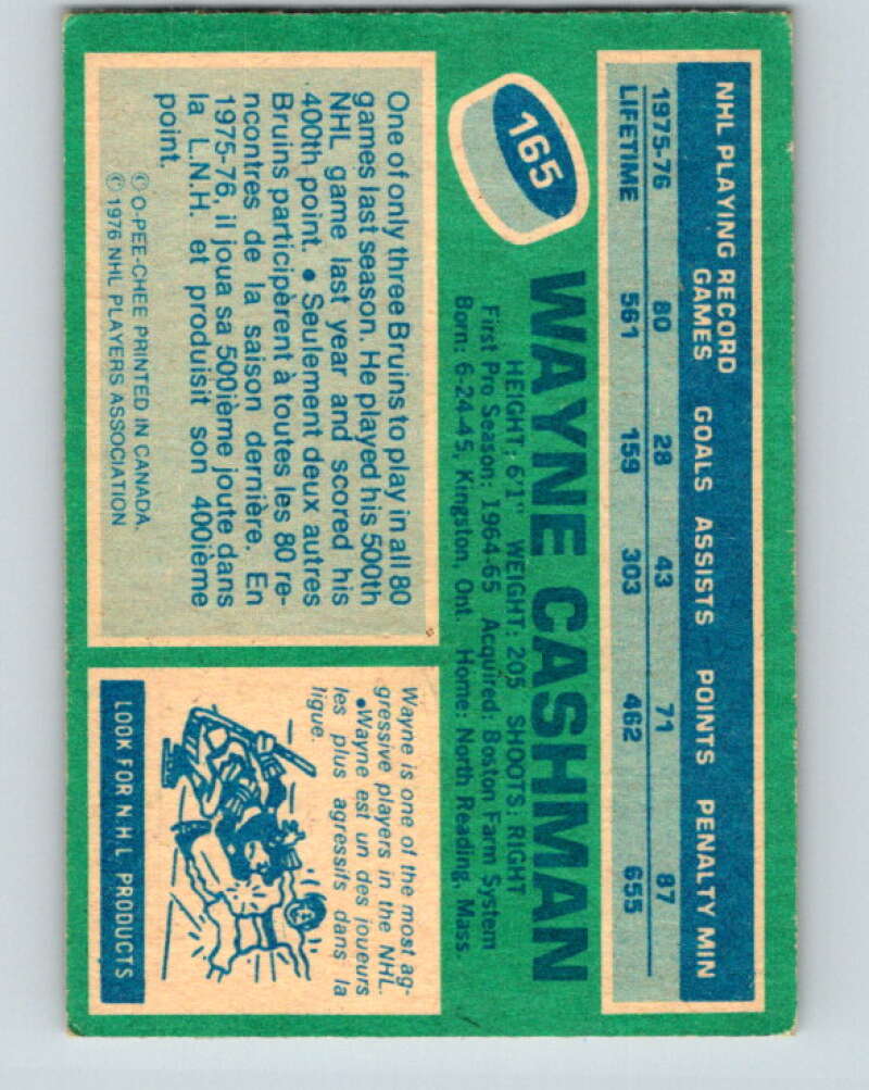 1976-77 OPC #165 Wayne Cashman Boston Bruins V2135