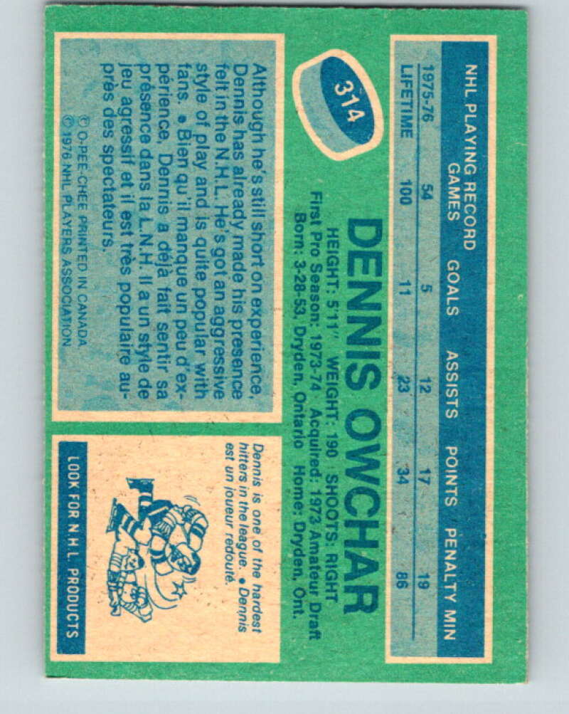 1976-77 OPC #314 Dennis Owchar Pittsburgh Penguins V2281