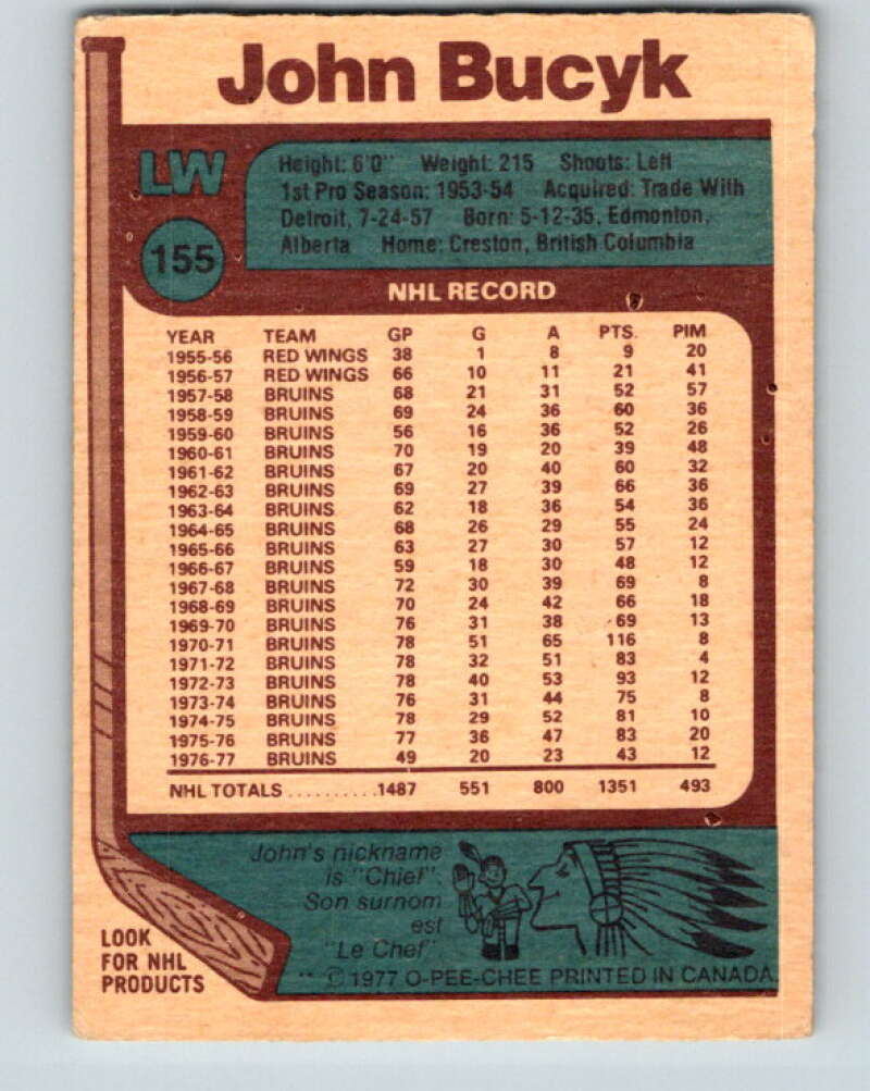 1977-78 O-Pee-Chee #155 Johnny Bucyk Boston Bruins V13996
