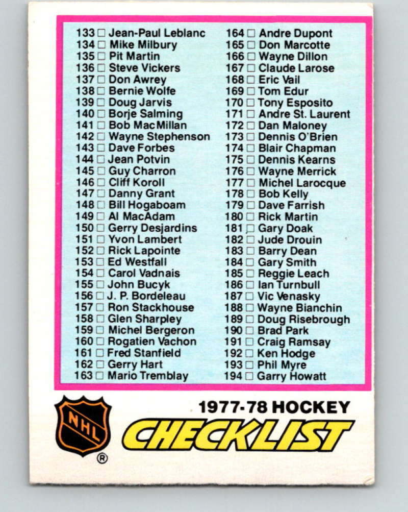 1977-78 O-Pee-Chee #249 Checklist NHL 9880