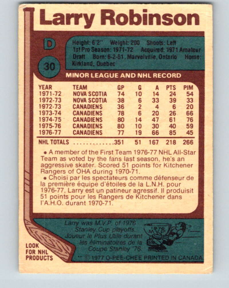 1977-78 O-Pee-Chee #30 Larry Robinson AS Montreal Canadiens V13112