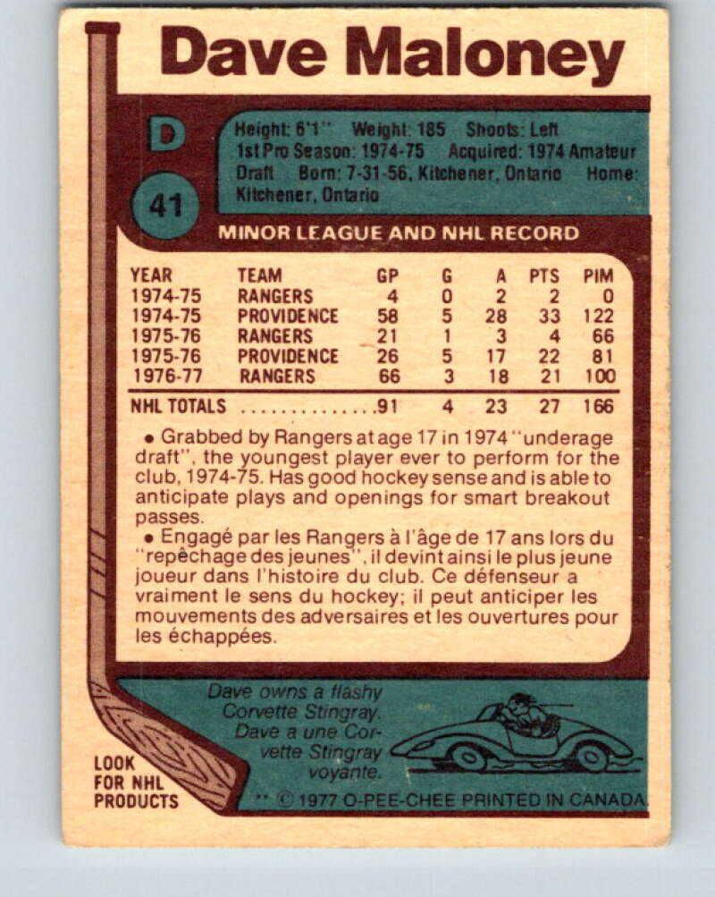 1977-78 O-Pee-Chee #41 Dave Maloney New York Rangers V13198