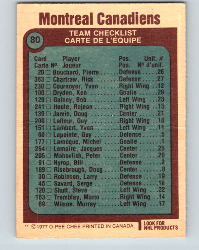1977-78 O-Pee-Chee #80 Canadiens Team Montreal Canadiens V13454