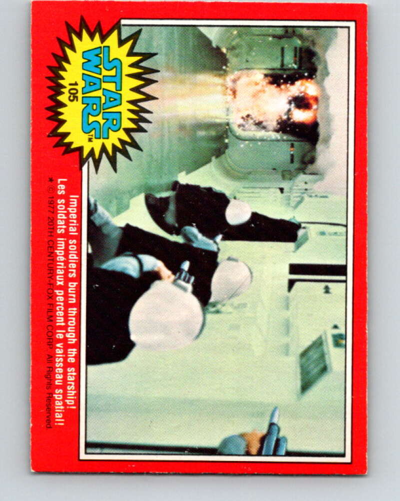 1977 OPC Star Wars #105 Imperial soldiers burn through the starship!