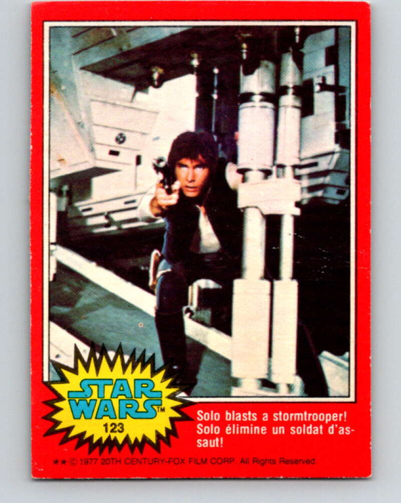 1977 OPC Star Wars #123 Solo blasts a stormtrooper!