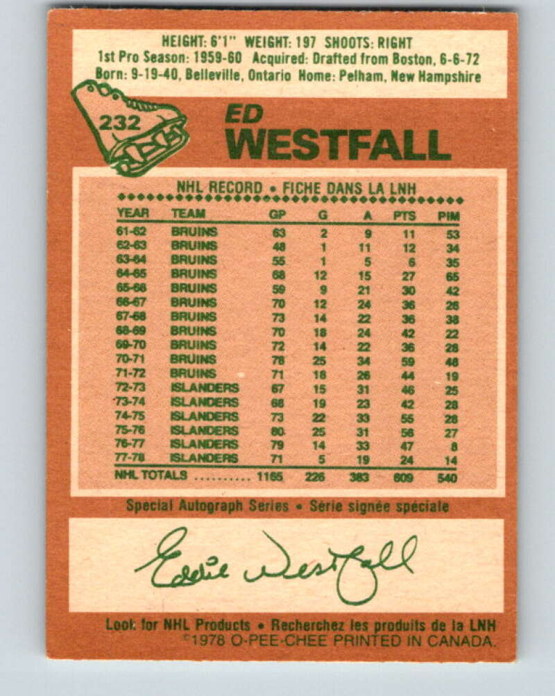 1978-79 O-Pee-Chee #232 Ed Westfall New York Islanders V24150
