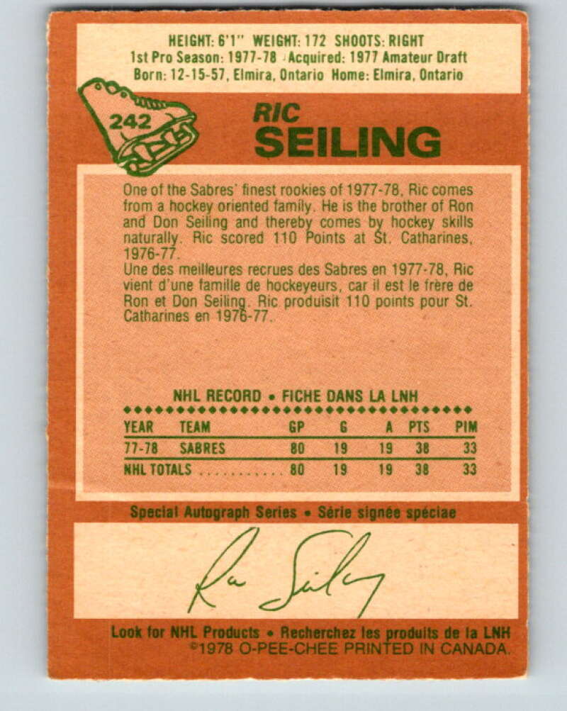 1978-79 O-Pee-Chee #242 Ric Seiling RC Rookie Buffalo Sabres V24303