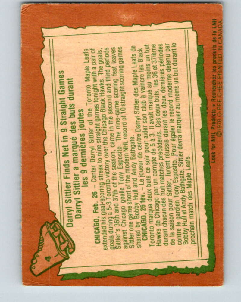 1978-79 O-Pee-Chee #4 Darryl Sittler Toronto Maple Leafs V20822