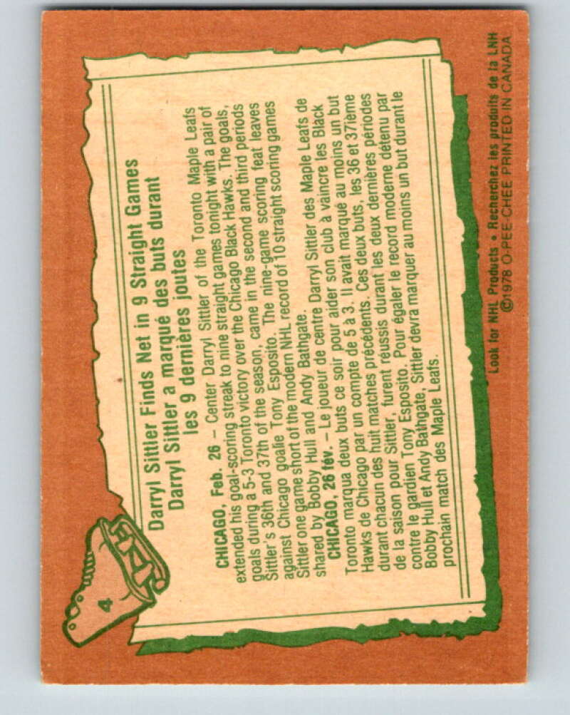1978-79 O-Pee-Chee #4 Darryl Sittler Toronto Maple Leafs V20829