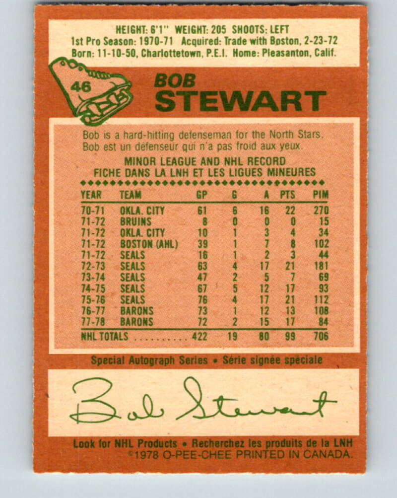 1978-79 O-Pee-Chee #46 Bob Stewart St. Louis Blues V21489