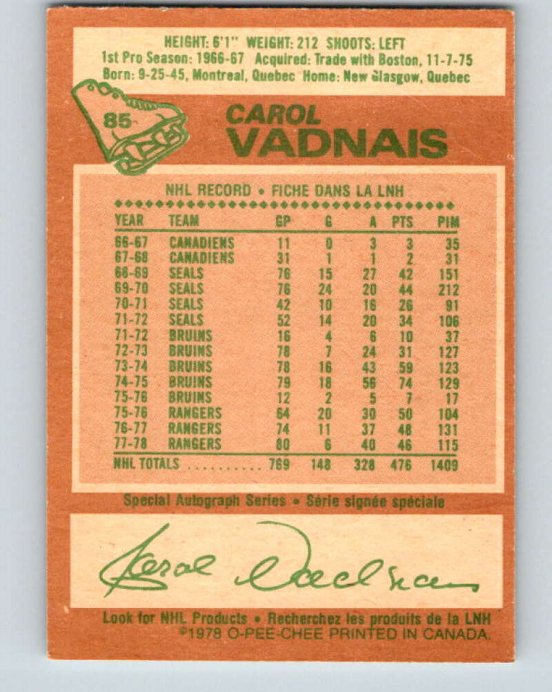 1978-79 O-Pee-Chee #85 Carol Vadnais New York Rangers V22073