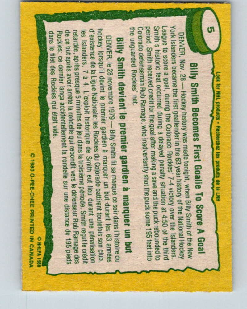 1980-81 O-Pee-Chee #5 Billy Smith RB New York Islanders V37044