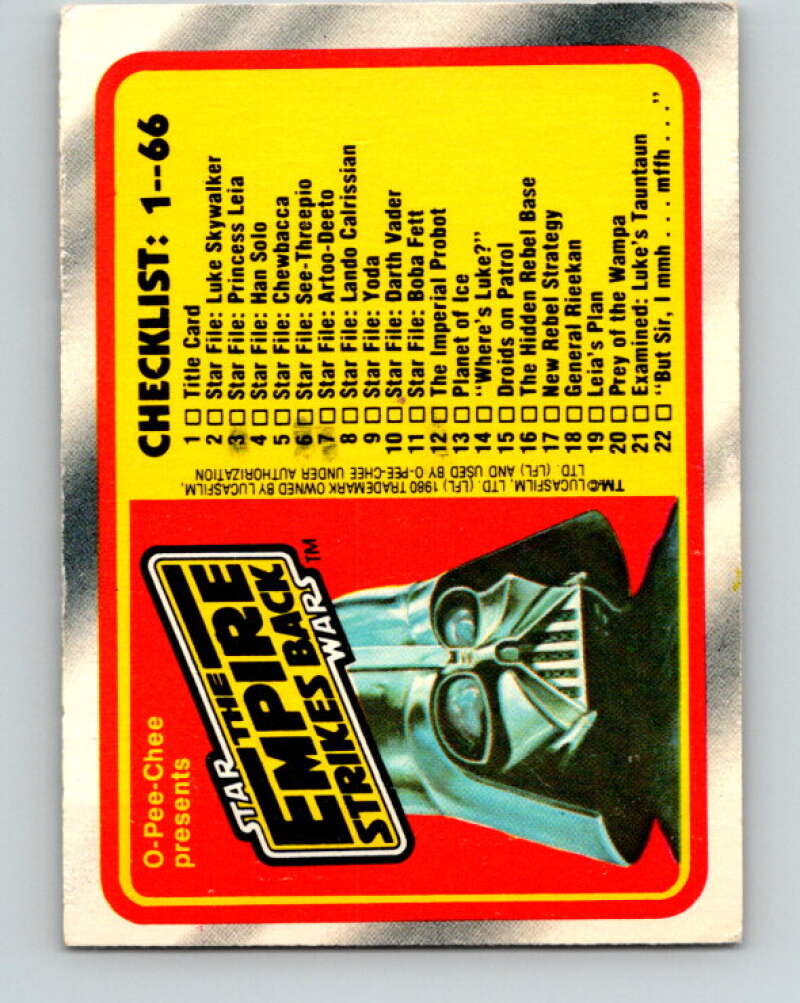 1980 OPC The Empire Strikes Back #131 Checklist 1-66