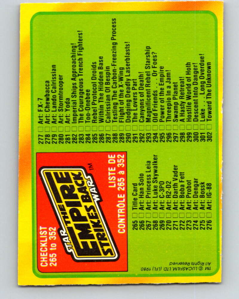 1980 OPC The Empire Strikes Back #352 Checklist 265-352