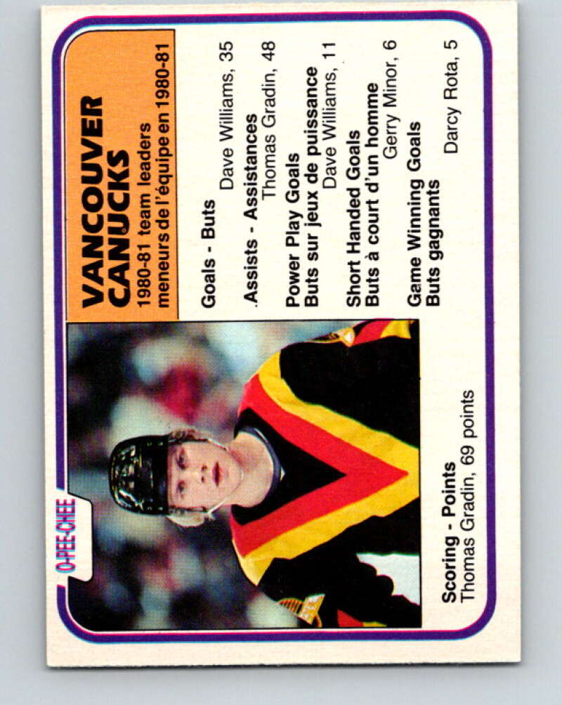 1981-82 O-Pee-Chee #346 Thomas Gradin TL Vancouver Canucks V31948