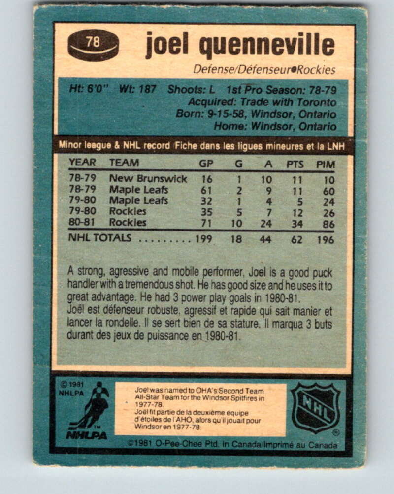 1981-82 O-Pee-Chee #78 Joel Quenneville Colorado Rockies V29973